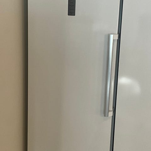 Myydään remontin tieltä siistikuntoinen jääkaappipakastin. Ylhäällä jääkaappiosasto. Alhaalla pakastinosa vetolaatikoilla. Etupaneelissa digitaalinen näyttö.