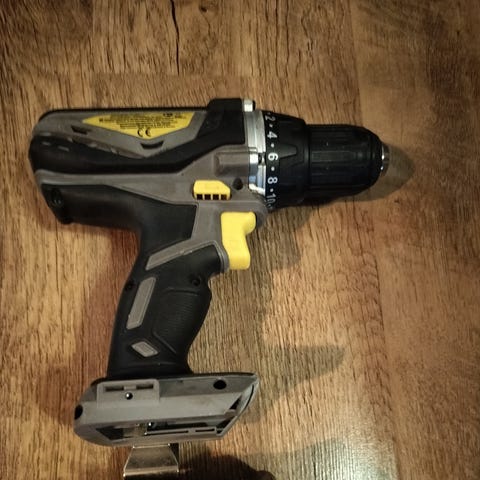 Working corded drill for home use and small renovation jobs. Power 420 W with a 10 mm chuck. It has signs of use and some surface rust on the chuck, but the drill is working.