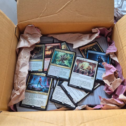 Puolet basic landeja ja puolet suurimmaksi osaksi commoneita ja uncommoneita. Joitain rareja löytyy. Suurin osa englanninkielisiä.