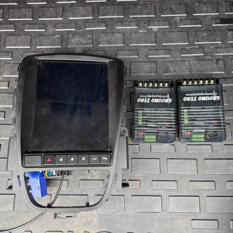 Auton alkuperäinen soitinyksikkö ja keskikonsolin ohjauspaneeli. Mukana erillinen soittimen runkoyksikkö sekä etupaneeli, jossa painikkeet radion, median ohjaukseen.