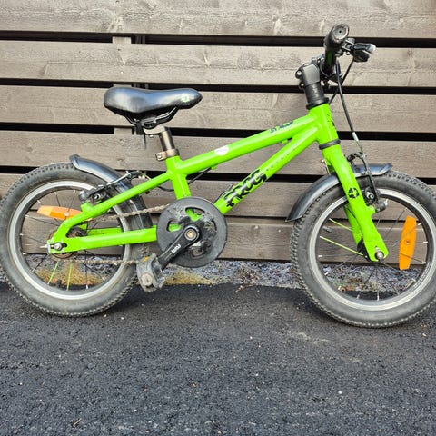 Kaupan päälle apupyörät. Pyörän eturenkaasta puuttuu lokasuoja. Pyörässä jonkin verran käytön jälkiä (huomiotu hinnassa).