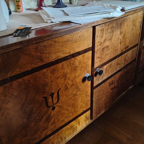 Koivuinen lipasto. 3 laatikkoa ja 3 kaappia