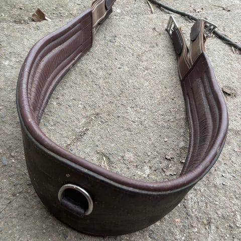 Muotoiltu nahkainen satulavyö joustoilla, pituus 110 cm