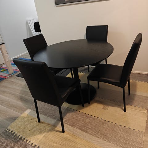 Hyvä ja kestävä pöytäryhmä esimerkiksi keittiöön tai ruokailutilaan.