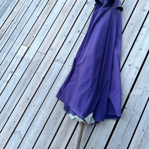 Myydään valkoinen sivuvarjo, joka tuo varjoa ja viihtyisyyttä terassille tai pihalle. Varjossa on pieni ampiaisen tekemä reikä, mutta muuten siisti ja täysin käyttökelpoinen. Mukana oma neliskanttinen jalka. Merkkiä ja ostopaikkaa ei tiedossa. Varjo löytyy Helsingistä, Kuusisaari.Varjossa oma pressu säilytystä varten.