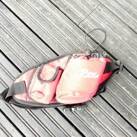 Fischer juomavyö musta. Vyössä on säädettävä hihna pikalukolla ja sivuilla pienet verkkokankaasta valmistetut taskut, joissa vetoketjusulku. Vyö on tarkoitettu juomapullon ja pienten tavaroiden, kuten avainten tai energiapatukoiden, kuljettamiseen esimerkiksi hiihtolenkeillä, juoksussa tai kävelyssä.