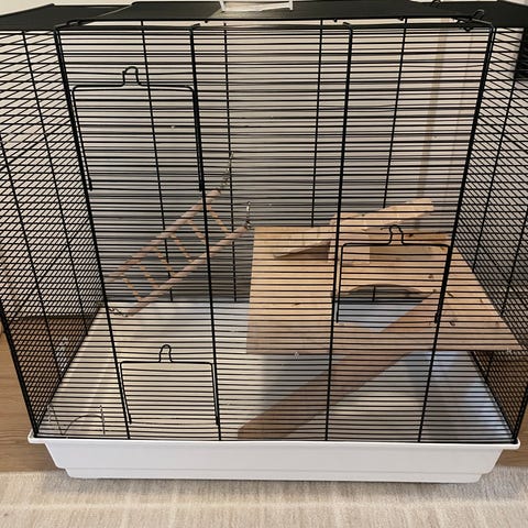 Myyntiin pieneksi jäänyt jyrsijän häkki.