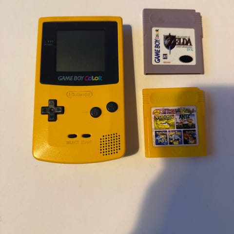 Nintendo Game Boy Color käsikonsoli sininen. Kyseessä on kannettava pelikonsoli, jossa on värinäyttö ja painikkeet etupuolella sekä paristokotelon kansi takapuolella. Mukana kuvissa näkyy alkuperäinen Game Boy Color -laatikko, käyttöohjeita ja esitteitä. Konsoli toimii AA-paristoilla. Soveltuu Game Boy- ja Game Boy Color -pelikaseteille.