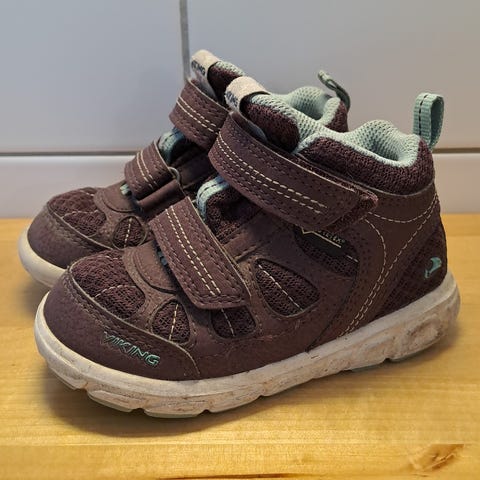 Viking lasten kengät unisex-mallia, koko 24. Kengissä on sininen väri tummemmilla yksityiskohdilla. Sulkeminen kahdella tarranauhalla, mikä helpottaa pukemista ja riisumista. Päällinen on hengittävää tekstiiliä ja synteettistä materiaalia, pohja vaalea ja kuvioitu pidon parantamiseksi. Sopivat arkeen ja ulkoiluun lapselle, joka käyttää kengänkokoa 24.