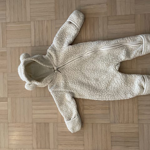 Hyväkuntoinen, suloinen teddykankainen nallehaalari vauvalle. Merkki Mini C.