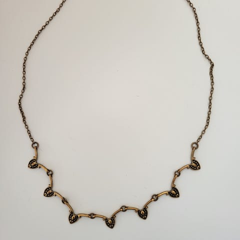 Kalevalan pronssinen kaulakoru kierretyllä koristeosalla. Pituudeltaan noin 46cm.
