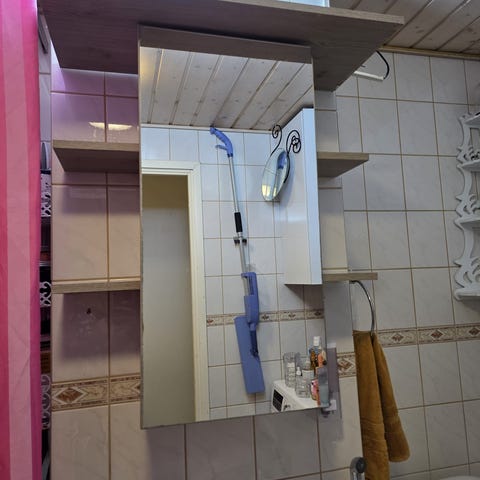 Kylpyhuoneeseen tarkoitettu valopeili. Peilissä on kaksi integroitua pystysuuntaista valopaikkaa (T8 valoputki integroidulla sytyttimellä). Soveltuu seinään asennettavaksi esim kylpyhuoneen tai vessan pesualtaan yläpuolelle. Ovat purettuina. Jonkin verran pölyä pinnalla, joka pyyhkäisemällä lähtee pois. 30e kpl tai 50e yhteensä. Vain nouto.