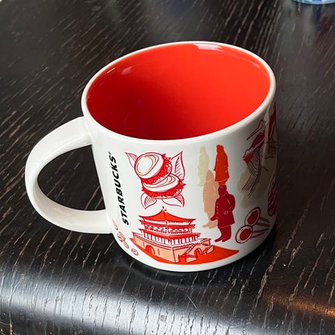 Starbucks muki. Punavalkoinen kuviollinen keraaminen muki. Muki on uusi eli käyttämätön. Tyylikäs ja harvinainen malli. Voit ostaa vaikka lahjaksi. Konepestävä sekä mikron kestävä. Mieluiten nouto. Korkeus 8 cm ja halkaisija 8.5 cm.