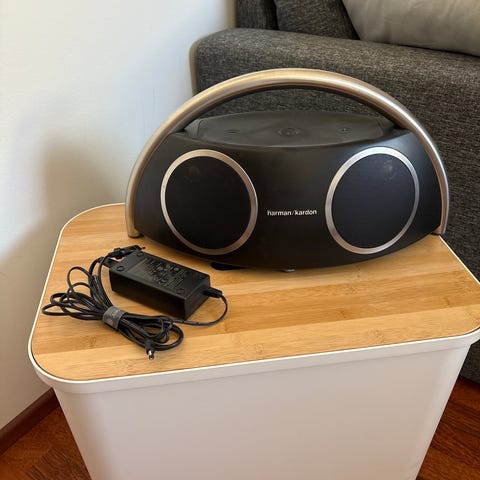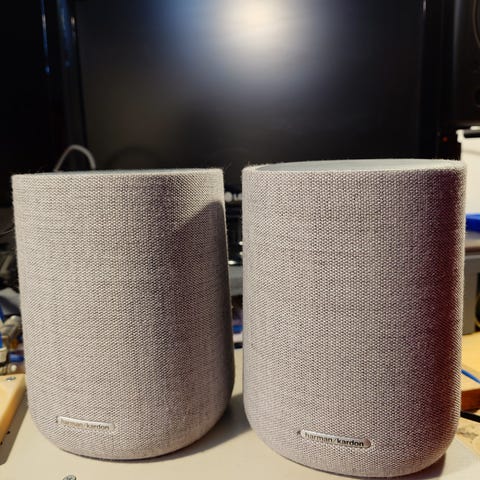 Harman Kardon älykaiutin harmaalla kangasverhoilulla