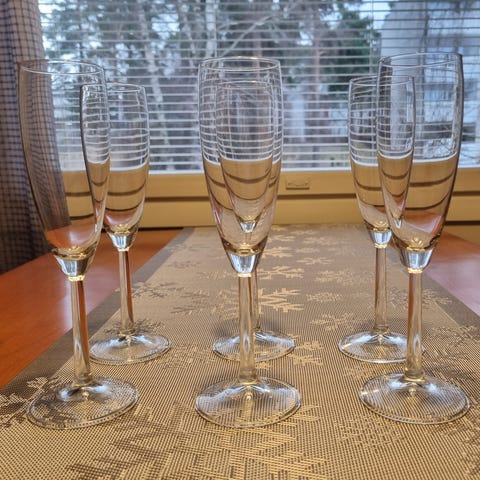 10 kuohuviinilasia, yhteensä 35 euroa. Olleet hyvin vähällä käytöllä, lähinnä säilytykesssä. Nouto Lohjalta.
