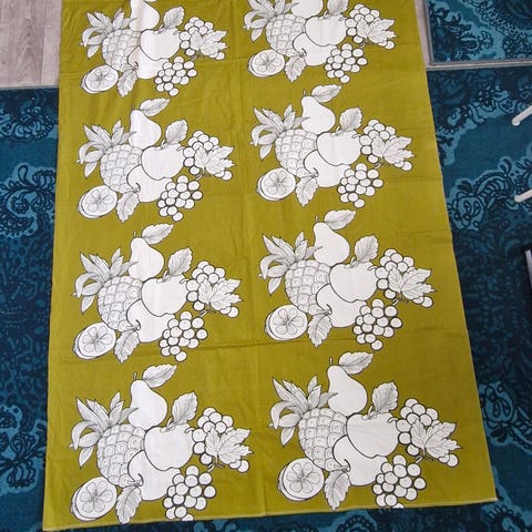 Vintage retrot verhot, 2 kpl. Väri vihreä/valkoinen. Leveys noin 130 cm, pituus noin 160 cm. Tankokuja. Tosi hyväkuntoiset.