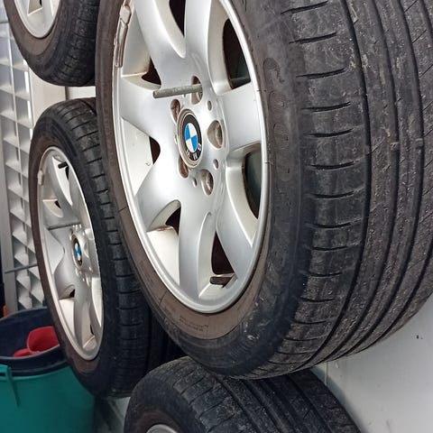 BMW e46 alla olleet vanteet joissa hyvät nastarenkaat.