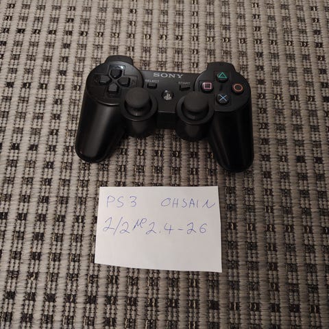 Sony DualShock 3 peliohjain PlayStation 3 -konsolille. Langaton ohjain, jossa on kaksi analogista tattia, ristiohjain, liipaisimet ja toimintonäppäimet tattiohjaimen jokin erikoistoiminto ei toimi muuten ok