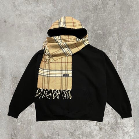 Custom Boxy fit huppari johon ommeltu 100% aito vintage Burberry kaulahuivi.