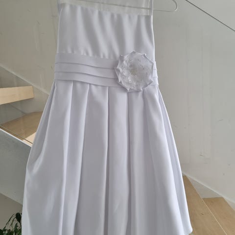 Myydään täydellinen tyllimekko. Koko 5, vastaa mielestäni 110-116 kokoa. Oli meillä vajaa 5v morsiustytöllä. Kerran pidetty. Hyväkuntoinen. Väri kermanvalkoinen.