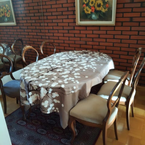 Myydään täyspuinen 6 hlö ruokailuryhmä.