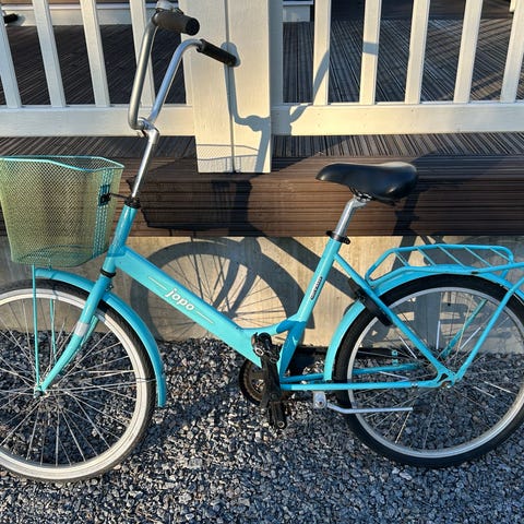Helkama lasten polkupyörä, jossa 24" renkaat. Rungon väri on sininen ja etuhaarukan yksityiskohdat vihreät. 7 vaihdetta. Nastarengas eteen.Vaihdevaijeri vaihdon tarpeessa.