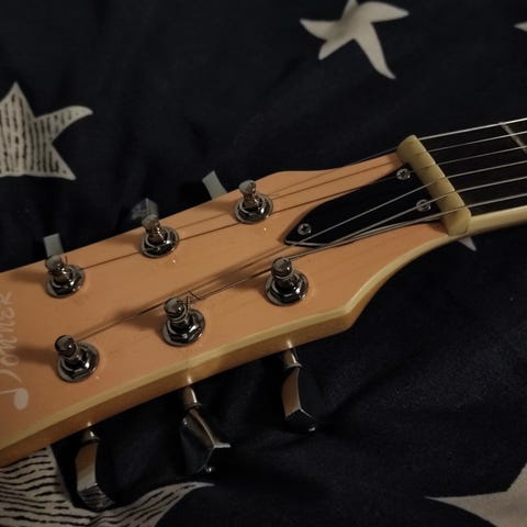 Okei, piti jättää tuo tekoälyn tuotos tuohon. Eli vintage les paul-malli, uskoakseni v100. Kotiin tuli tämän vuoden puolella, tuli itselle kun viime kesänä tuli tilattua epiphonen sg jota ei pystytty toimittamaan ja lopulta tämän otin tilalle. Istunut telineessä eli kaupan kunnossa. Nauhat kaipaisi vähän hiontaa päistä, pikkuisen on karheat käteen. Jäi nyt ylimääräiseksi kun kovassakin näkyy tuo toinen LP vibrakammen kanssa takana.