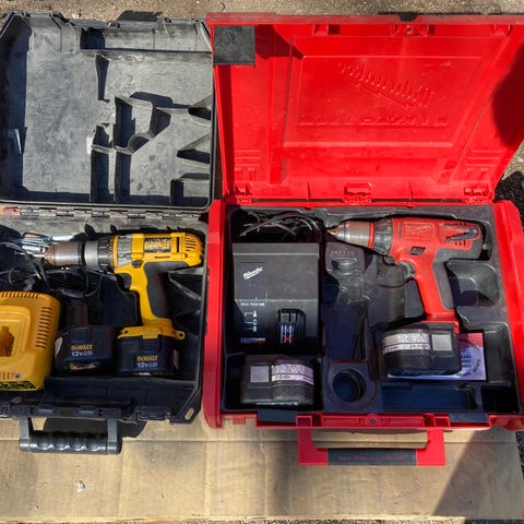 Toimiva Dewalt DCD731, laturi, akku, laukku, ohjekirja. Toinen akku rikki.
