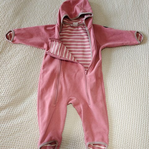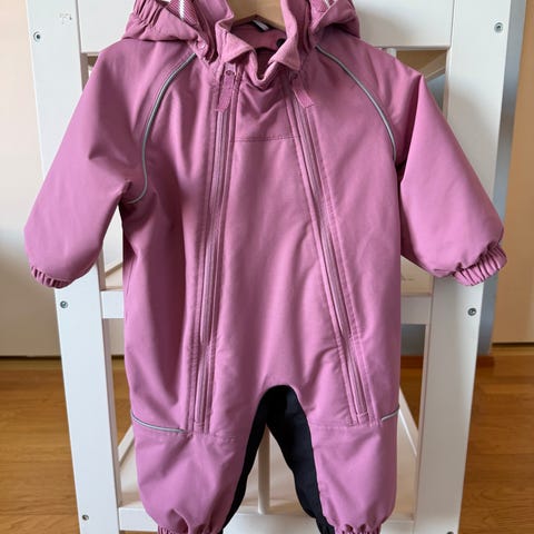 Hyväkuntoinen vaaleanpunainen välikausihaalari. Sisällä pehmeä ja lämmin vuori, joten tämä haalari sopii hyvin myös kylmempiin päiviin. Haalarissa ei ole kulumaa, vain aavistus käytönjälkeä läheltä tarkastellessa. Väri vastaa oikeaa kauempaa otetuissa kuvissa, lähikuvissa haalistuu. Hajusteeton.