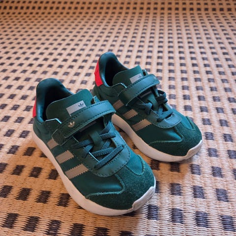 Erittäin hyväkuntoiset, selvästi vähän käytetyt Adidaksen lenkkarit. Aran värin vuoksi tummentumaa paikoin/ etenkin kenkien päällä kärjissä. Muutoin kengät ovat lähes uudenveroiset.Tarrat pitää erinomaisesti.