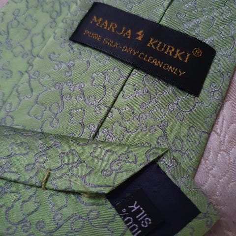 Marja Kurki solmio silkkiä tummansininen punainen geometrinen kuvio