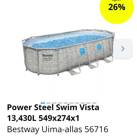 Bestwayn uima-allas 2.5m x 5m. Laadukas hiekkasuodatin ja lämmitin. Allas nähnyt parhaat päivänsä mutta pitää vetensä. Tästä paketti pelkästään suodattimen hinnalla.