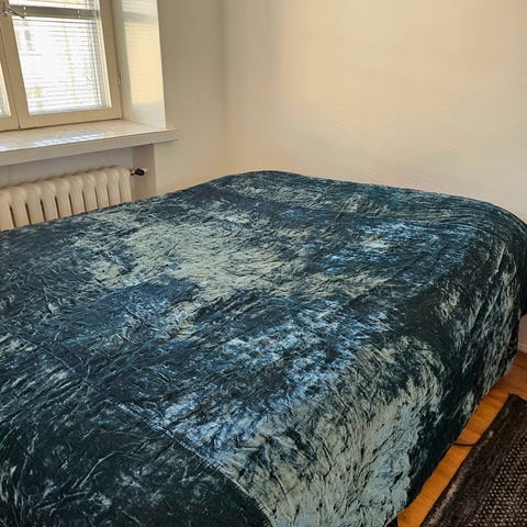 Sopii hyvin max 120cm leveälle tai sitä kapeammalle sängylle. Peiton koko noin 148x244cm.