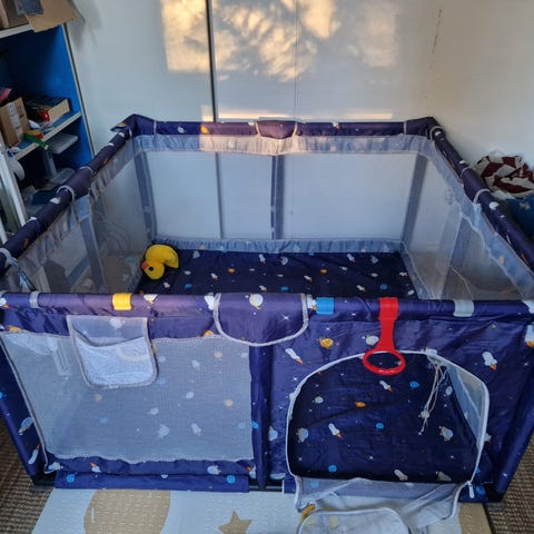Kyseessä tämä https://www.jollyroom.fi/lastentarvikkeet/lasten-turvallisuus/turvaportit-lapsiportit/leikkikehat/beemoo-safe-space-leikkikeha-130x130-beige.