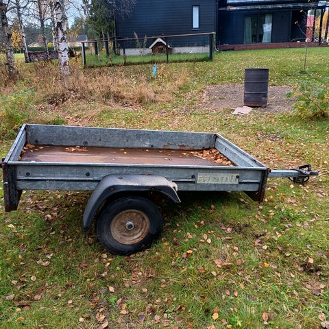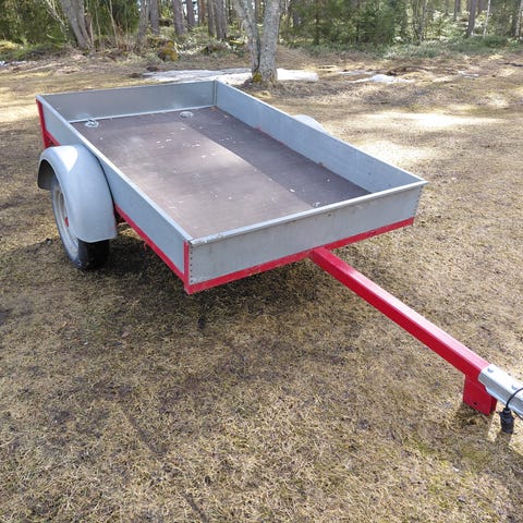 Toimiva pikkukärry. Lavan mitat 1100*2100.