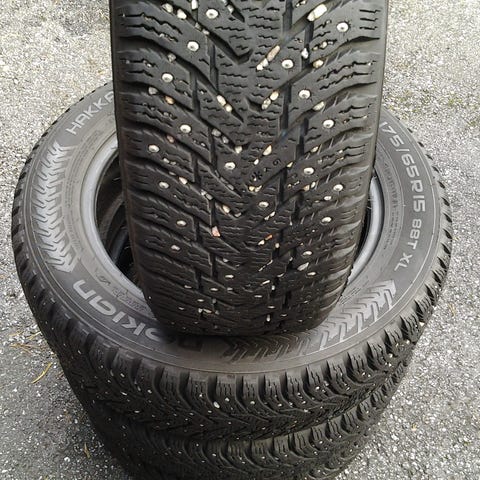 Nokian Hakkapeliitta 7. 175/65/15 Pintaa n. 6mm ja nastat tallella. Paistettu 35/15