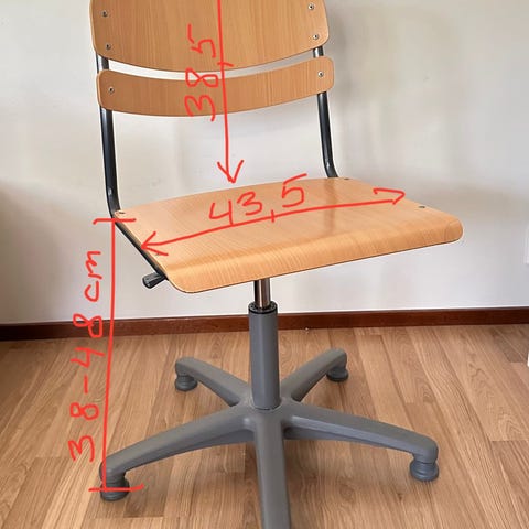 Tekonahkainen ja verhoiltu tuoli. Vaatii puhdistusta.