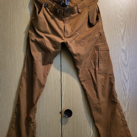 Edessä paljon laskoksia, leveälahkeiset housut, koko M