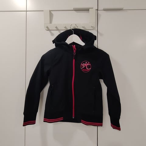 Equestrian Society softshell-takki lapselle, koko 140. Takki on punainen ja siinä on korkea kaulus sekä täyspitkä vetoketju edessä. Edessä on kaksi vetoketjullista taskua. Rinnassa on merkki ja selässä teksti- ja tähtiyksityiskohdat. Soveltuu arki- ja tallikäyttöön sekä ulkoiluun.