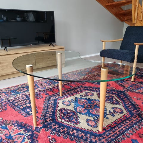 Uusi tuote, hieno Golden lasikantinen sohvapöytä, nyt siisti myymälämalli sopivasti ja mukavasti...-50%