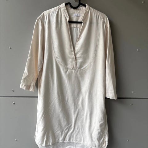 Filippa K mekko, koko M. Väri musta ja materiaali polyesteriä. Mekossa on pitkät hihat, koristenapit yläosassa ja vyötäröllä kiristysnauha. Helma on pitkä. Sopii arki- ja juhlakäyttöön.
