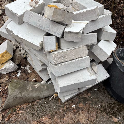 Annetaan iso kasa vanhoja betonitiiliä, jos jollain käyttö tai tarvetta tuollaisille. Saa käydä hakemassa myös vain tarpeen mukaan, ei tarvitse koko kasaa viedä kerralla.