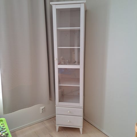 Tilava kaappi esim. lasten lelujen säilytykseen. Käytön jälkiä löytyy, mutta edelleen yleisilmeeltään siisti kaappi.