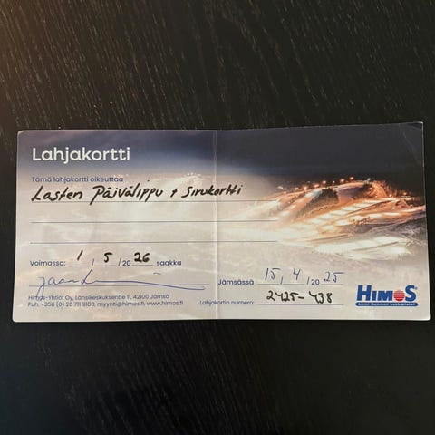 Axess Resort Solutions hissiliput X2 iltamäkeen (arki-illat 16-20.30)Hyvinkään Sveitsiin. Voimassa kevätkauden loppuun.