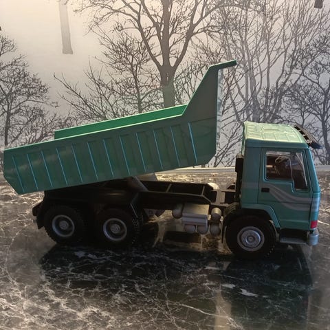 Hyväkuntoinen, vanha, täysin ehjä ja toimiva Emek Volvo FH12 sorarekka. Peilit ja pyyhkijät pois lukien puutteeton. Hytti ajan haalistama, auto on kasattu ns. ehjistä ylijäämäosista kokeilumielessä ja tehty kunnolla mm. osat käytetyt sopineet sellaisenaan ilman muutoksia ja runko maalattu sivujen osalta samansävyisellä harmaalla. Kärry ihan alkuperäinen ja kaikilta osin ehjä.