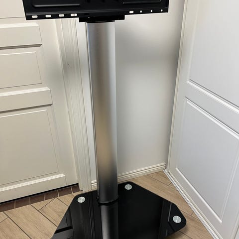 TV-teline, jossa alumiininen runko ja kaksi lasitasoa. Teline on varustettu pyörillä ja siinä on VESA-kiskot (100x100 - 600x400) taulutelevisiolle. Alatason mitat L61xS50, hylly L46xS43, hyllyväli 26 cm, kok. korkeus 90 cm. Soveltuu television (max 65", 40 kg) lisäksi esim. kotiteatterivahvistimen ja tallentavan digiboksin sijoittamiseen. TV:tä voi kääntää 90 astetta. Tuotemerkki Spectral QX1011.