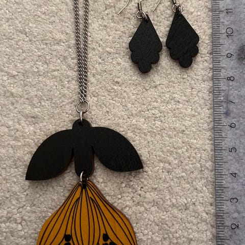 Myydään kaunis ja ajaton kaulakoru, jonka on suunnitellut palkittu muotoilija Päivi Laukkanen (Karelian Wooden Jewelry). Koru ammentaa muotokielensä karjalaisesta lintusymboliikasta ja suomalaisesta käsityöperinteestä.