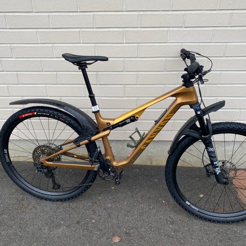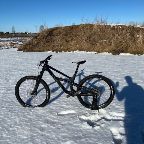 Edessä 160 mm ja takana 150 mm joustoa. Kokonaisuutena ajoa tullut n. 600 km, eli täysin uudenveroinen, tuli innostuttua gravelista ja jäi pyörä pölyttymään varastoon. Renkaatkin alkuperäiset ja vielä todella hyvin pintaa.