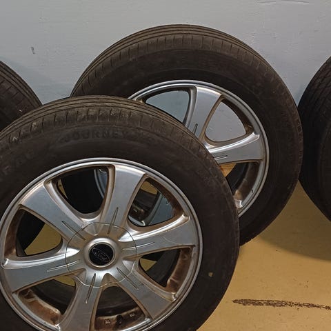 Vanteiden yleinen kunto on hyvä, yhdessä vanteessa pieni kanttari hankauma ja sisäkannuissa epäsiisteyttä. Renkaat hyvät, tasaisesti kuluneet ja pitävät ilmat sisällään.