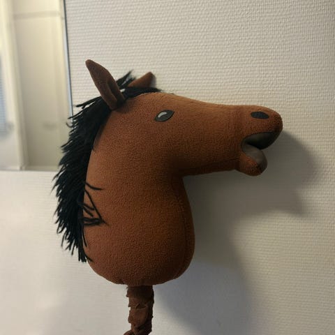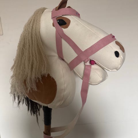 Hyväkuntoinen pilkullinen keppihevonen.